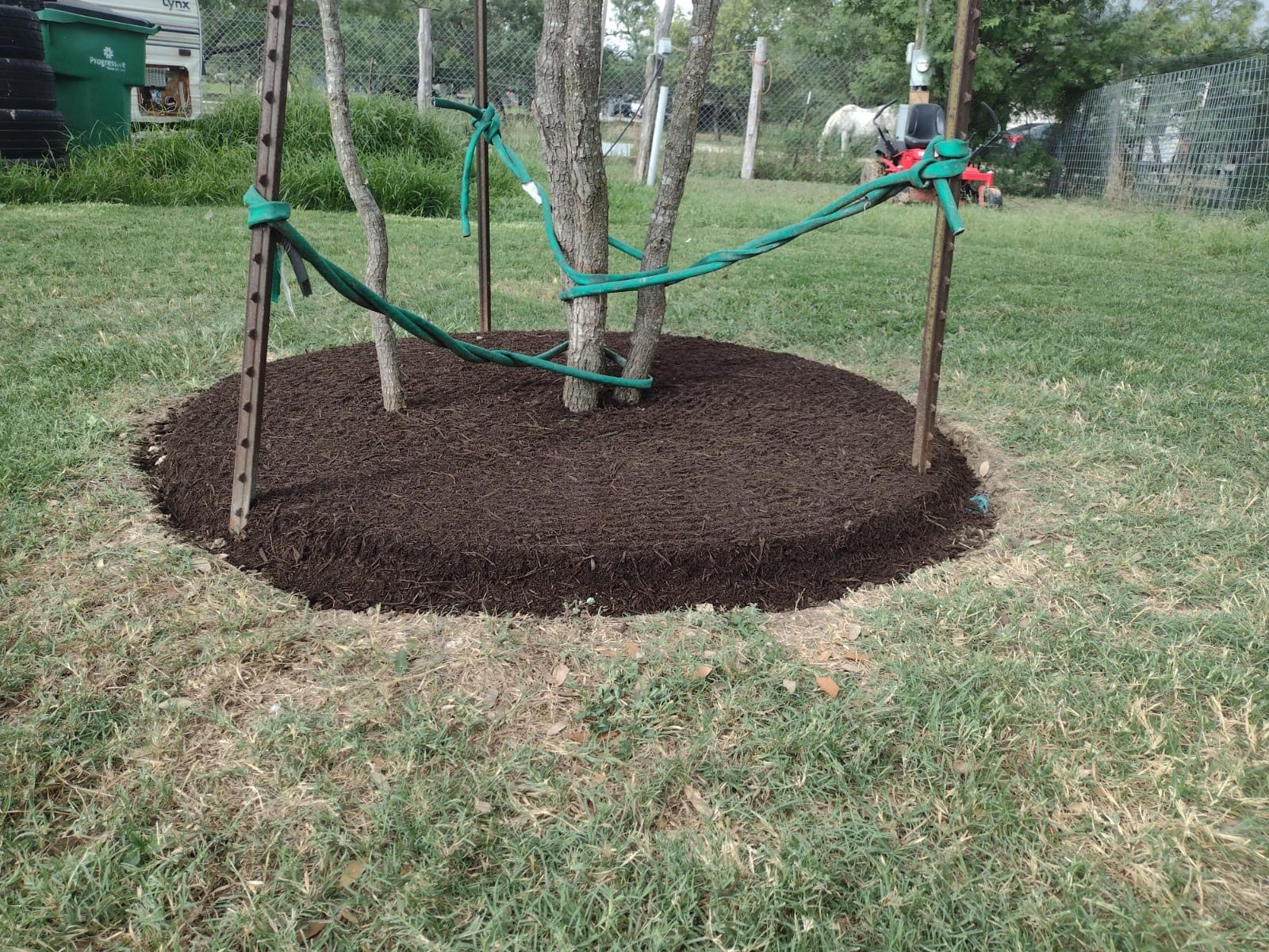 Spreading high-quality mulch to enhance soil health, retain moisture, and improve landscape appearance.